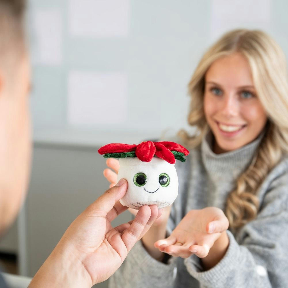 Der Weihnachtsstern aus der Evergreenies®-Serie bringt festlichen Glanz auf Ihren Schreibtisch. Mit seiner liebevollen Gestaltung ist er das perfekte Accessoire für die (Vor-)Weihnachtszeit und gleichzeitig ein praktischer Displayreiniger – und das Beste: Er bleibt dauerhaft schön, ganz ohne Gießen. Die Mikrofaserunterseite entfernt zuverlässig Fingerabdrücke und Staub von Bildschirmen, Smartphones oder Tablets. Mit einem Logo oder Spruch auf der Werbefahne ist die Pflanze ein perfekter Werbeträger mit Mehrwert, denn sie vereint Nützlichkeit mit Charme und einer Werbebotschaft. Ideal fürs Büro oder für Zuhause und macht den verwelkten Zimmerpflanzen charmant Konkurrenz. - -