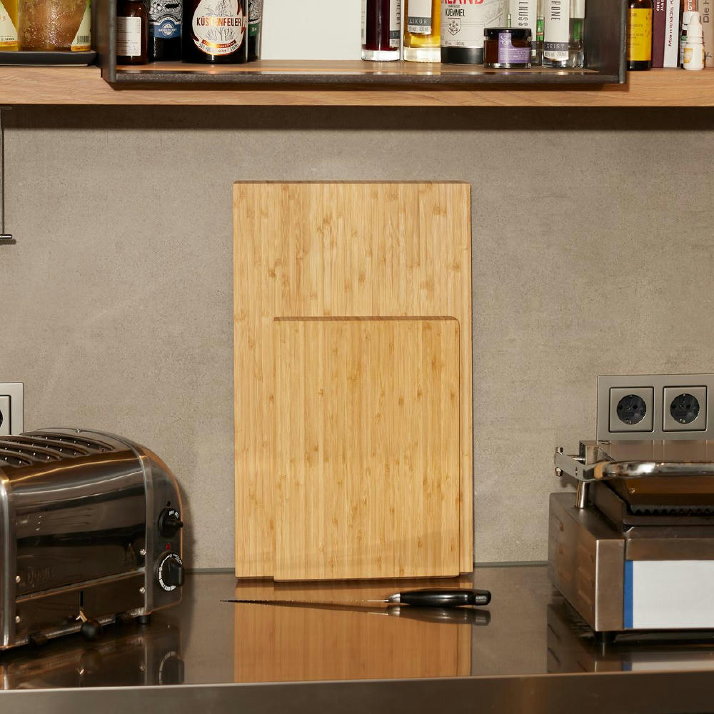 Schneidbrett aus natürlich antibakteriellem Bambusholz mit angeschrägten Kanten.