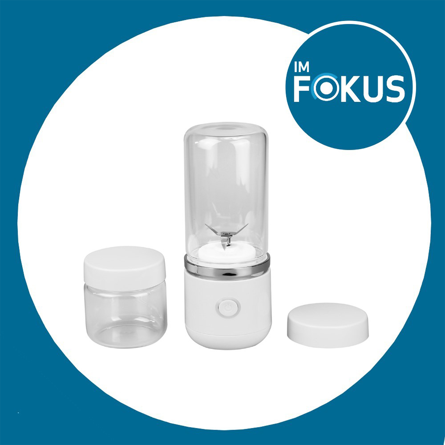 Säfte, Smoothies und Shakes schmecken frisch zubereitet einfach am Besten. Mit Smooth2Go haben Sie einen kleinen, mobilen Mixer immer da, wo Sie ihn gerade brauchen - inklusive tollem Rezeptheft. Dank dem passenden, mitgelieferten Schraubdeckel wird der Tumbler aus Echtglas nach dem Mixen im Handumdrehen zum praktischen Cup-to-go. Perfekt geeignet für Picknicks, Ausflüge oder Parties. Mit 18.000 Umdrehungen pro Minute, Kindersicherung und leistungsstarkem, wiederaufladbarem Akku steht einem mobilen Frischegenuss nichts mehr im Wege.