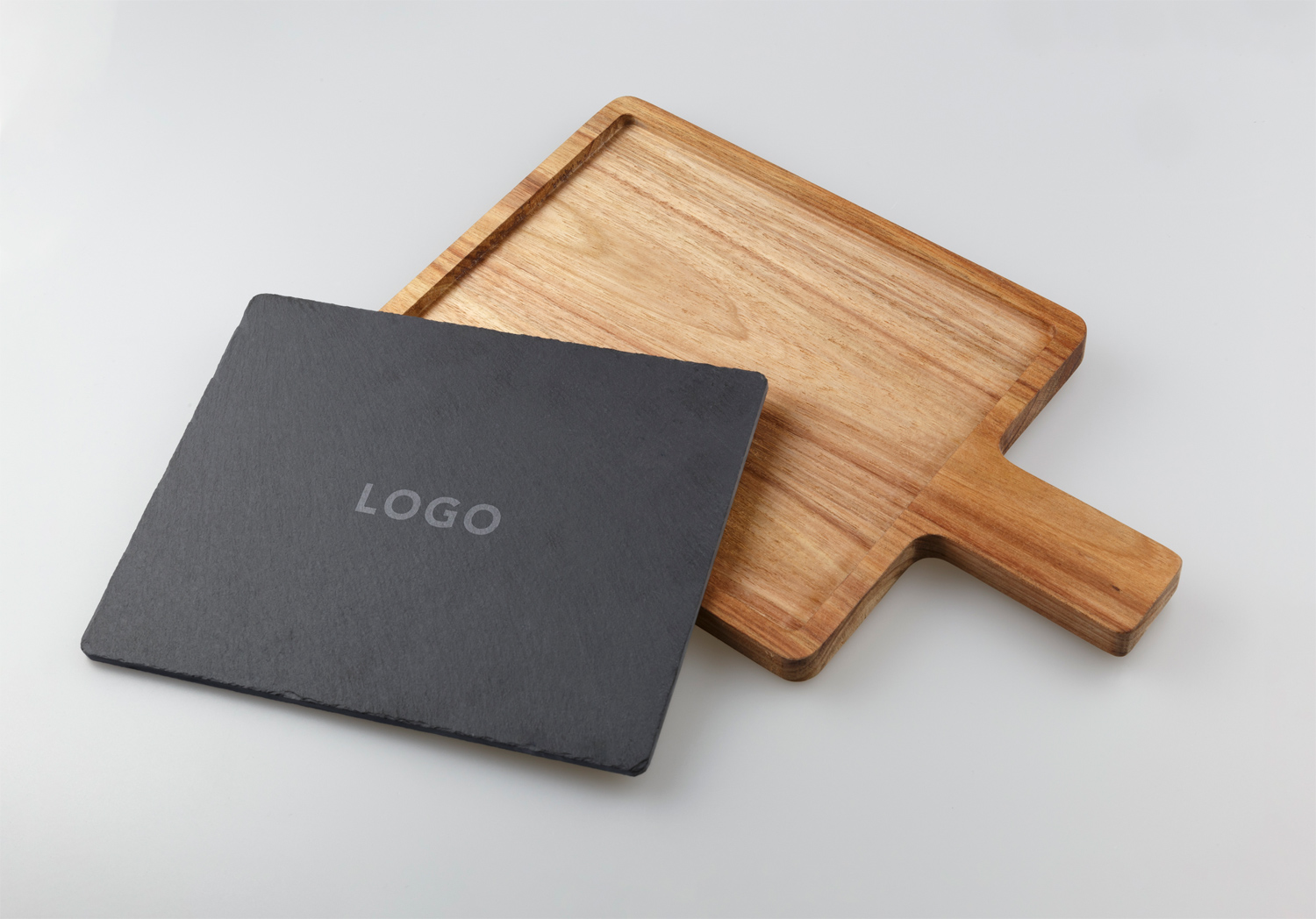 Stilvolles Servierbrett aus Akazienholz mit eingelassener Naturschieferplatte. Kratzfest, stoßbeständig und lebensmittelecht, ideal für Käse, Obst oder Snacks. Zwei Materialien für einen eleganten Look und einfache Reinigung. Stabiler Griff für sicheren Halt.