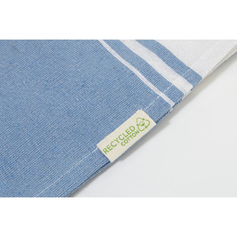 Zweifarbiges Pareo-Strandtuch. Material: 70 % recycelter Baumwolle und 30 % RPET-Polyester (180 g/m²).