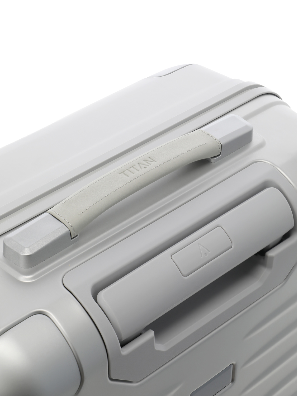 Einzigartiger TITAN Smart Frame im Aluminium-Gehäuse: kein Verbiegen bei hoher Drucklast . Mono-Lock für noch leichteres Handling beim Öffnen und Schließen des Koffers (bei S, bei M und L zwei Schlösser) à zwei extra große TSA-Schlösser für müheloses Handling beim Öffnen und Schließen des Koffers.Stufenlos verstellbarer Teleskopgriff, Griffe aus Echtleder, Innenfutter aus recyceltem Polyester mit hochwertiger Jacquard-Webung. Intelligente Innenaufteilung mit Mesh-Fächern und herausnehmbarer Packplatte, Packgurte in praktischer Y-Shape. Premium-Kugellager-Rollen. Produktspezifische Seriennummer. 10 Jahre Garantie, handgefertigt in Deutschland, 100 % Aluminium.