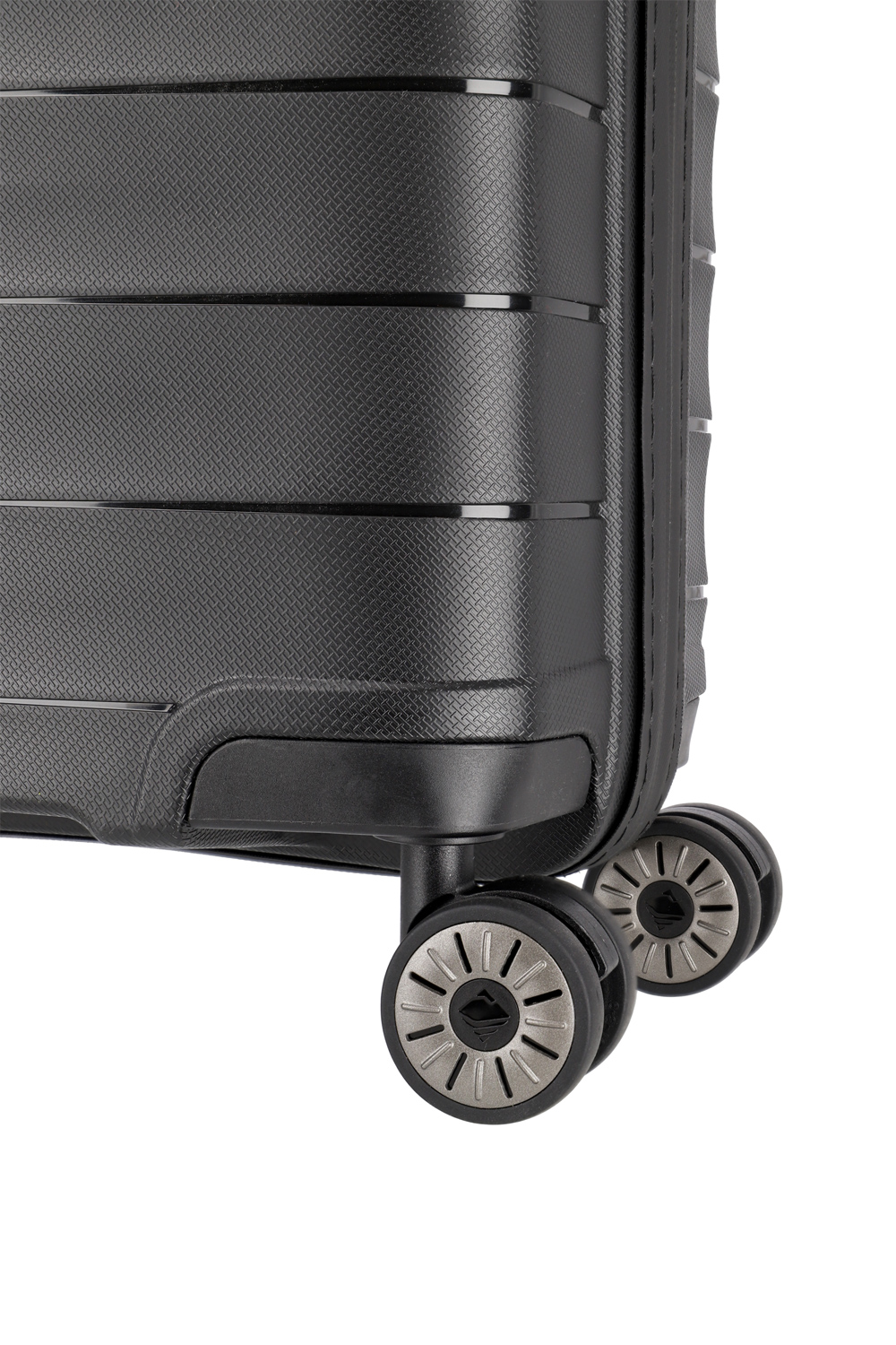 Die Hartschalentrolleys der Serie Mooby sind aus recyceltem Polypropylen (mit Ocean Bound Plastic), das Innenfutter ist aus recyceltem Polyester. Die Oberfläche ist kratzresistent. Alle Trolleys der Mooby-Serie haben ein versenktes TSA Kombinationsschloss und 4 gummierte Doppelrollen.