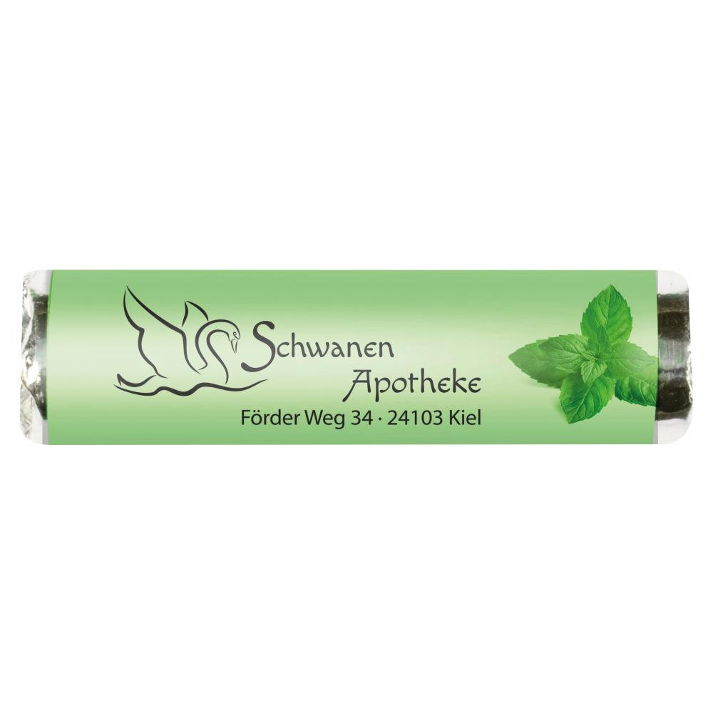 Handliche Röllchen mit 9 Traubenzucker-Pastillen „Mint“, mit echtem Pfefferminzöl oder "Fruit". 100 % Vegan. Haltbarkeit bei sachgerechter Lagerung ca. 18-24 Monate.