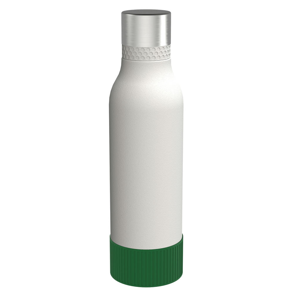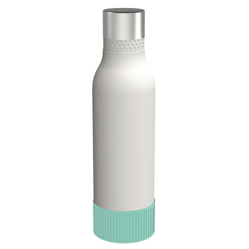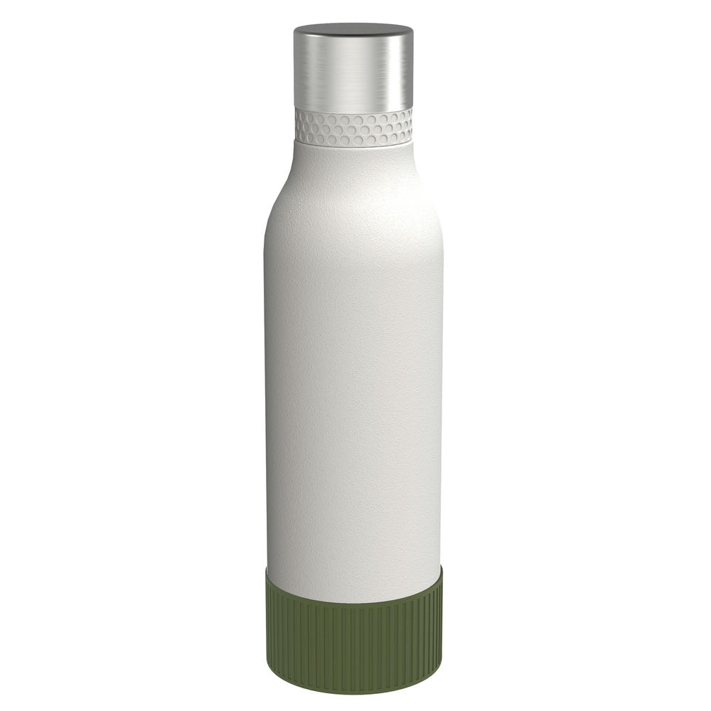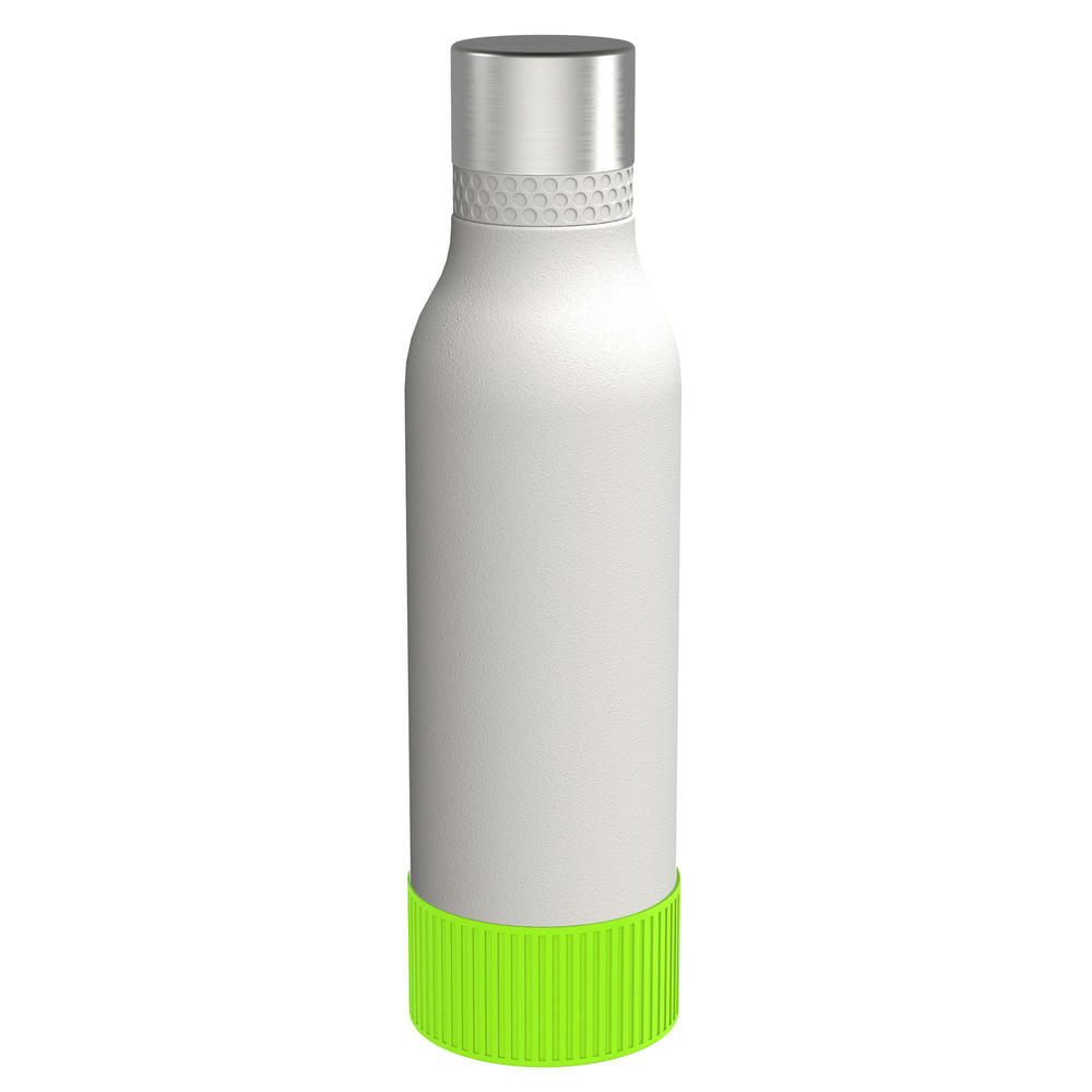 Die 820 ml Trinkflasche ist in 4 Farben erhältlich, von leuchtendem Hellgrün bis zu zeitlosem Weiß. Hergestellt aus recyceltem Edelstahl und recyceltem PP-Kunststoff, ist die Flasche pulverbeschichtet und hat eine attraktive Haptik und Optik. Wählen Sie einen Silikonring und/oder einen Silikonsleeve aus 17 Farben! Sie bevorzugen ein einfacheres Design? Ohne die Auswahl dieser beiden Elemente erhalten Sie die Flasche mit einem gleichfarbigen Silikonring. Der BPA-freie Deckel bietet einen verlässlichen Auslaufschutz. Tipp: Alle Komponenten dieses Artikels können Sie in der Spülmaschine reinigen.