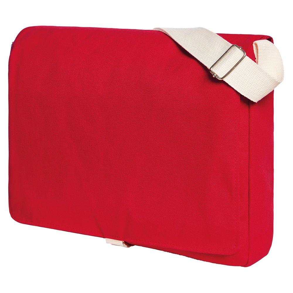 Überschlagtasche mit wertigen Metall-Accessoires; Bügelverschluss; großes Hauptfach u.a. geeignet für A4 Unterlagen; zwei flache Einsteckfächer auf der Front; rückseitige Befestigungsschlaufe für Trolley-Gestänge - alternativ auch als Handgriff nutzbar; breiter, längenverstellbarer Baumwoll-Schultergurt