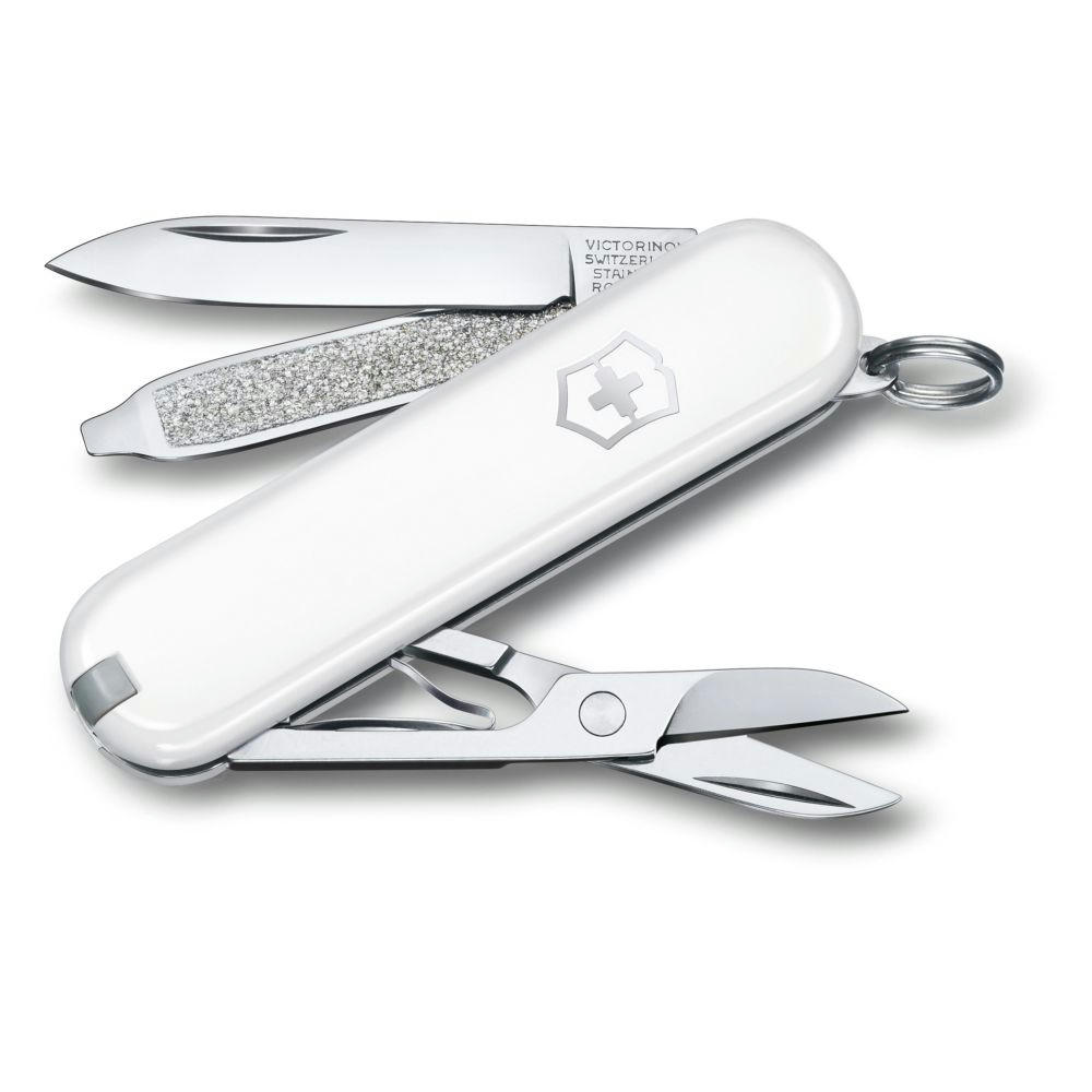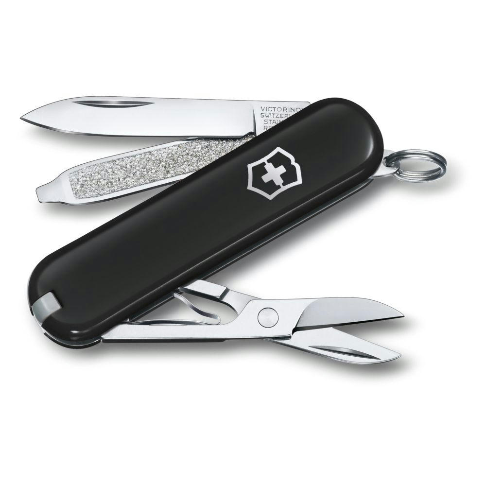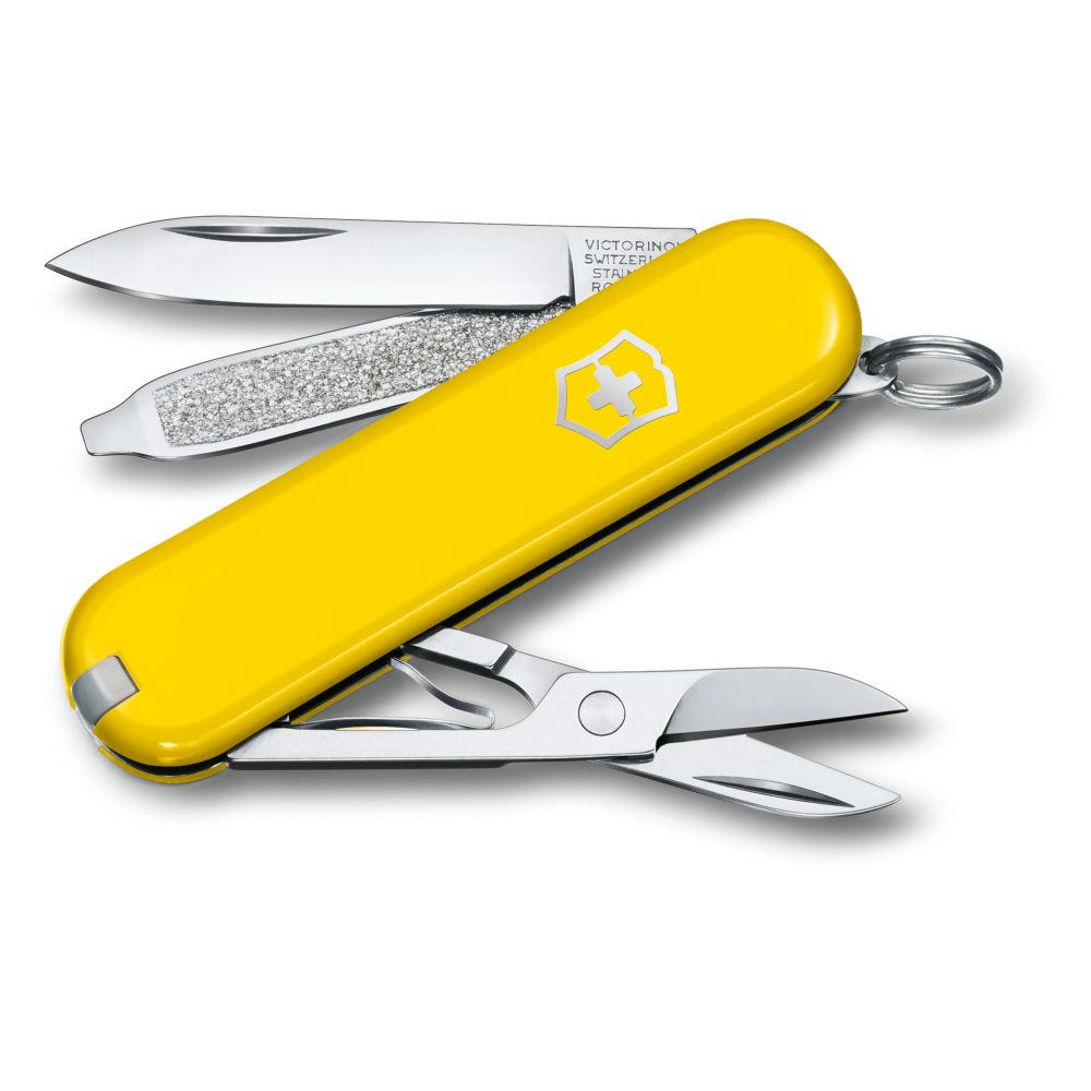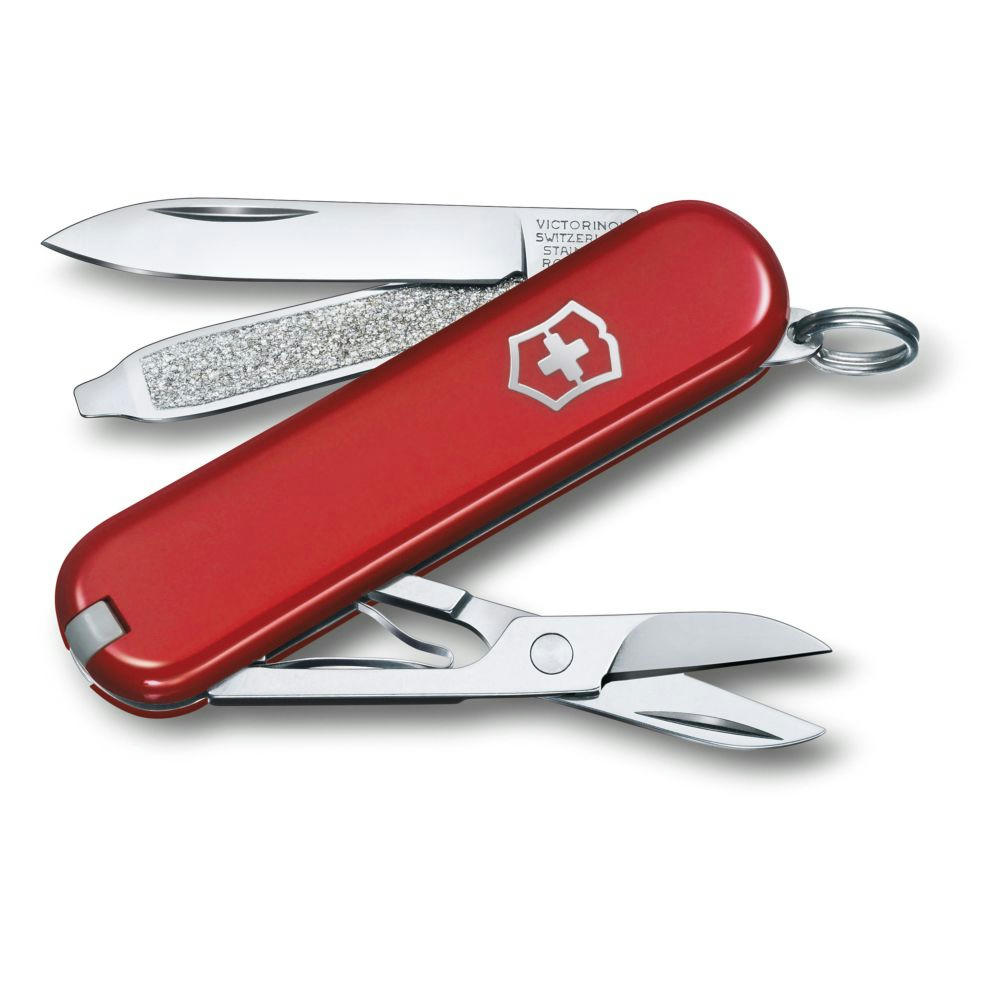 Ein kompaktes Werkzeug für Alltagsaufgaben. Taschenmesser mit 7 Funktionen. hergestellt in der Schweiz. Beinhaltet eine Schere und eine Nagelfeile mit Schraubendreher.