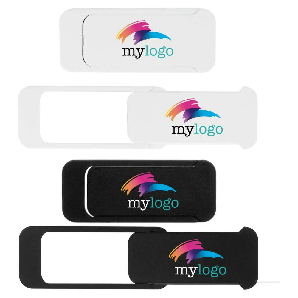 Webcam-Cover mit Schiebemechanismus zum Öffnen und Schließen. Preis inkl. individuell bedruckter Anleitungskarte.