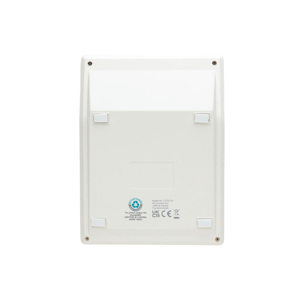 8-stelliger Taschenrechner aus RCS (Recycled Claim Standard)-zertifiziert recyceltem ABS und 100 % Bambus. Gesamter Recyclinganteil: 70 % bezogen auf das Gesamtgewicht des Artikels. Mit Solarzellen sowie Zellbatterien zur direkten Nutzung.