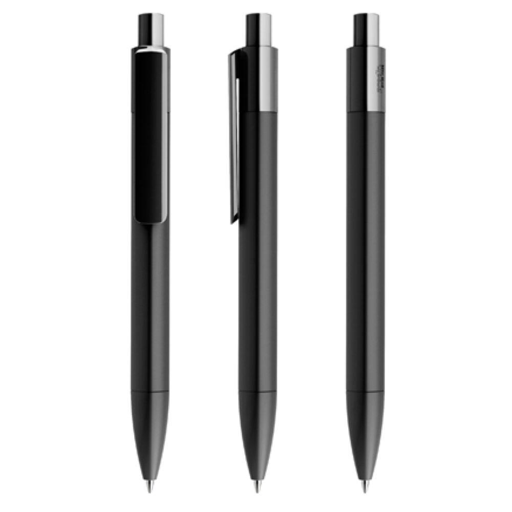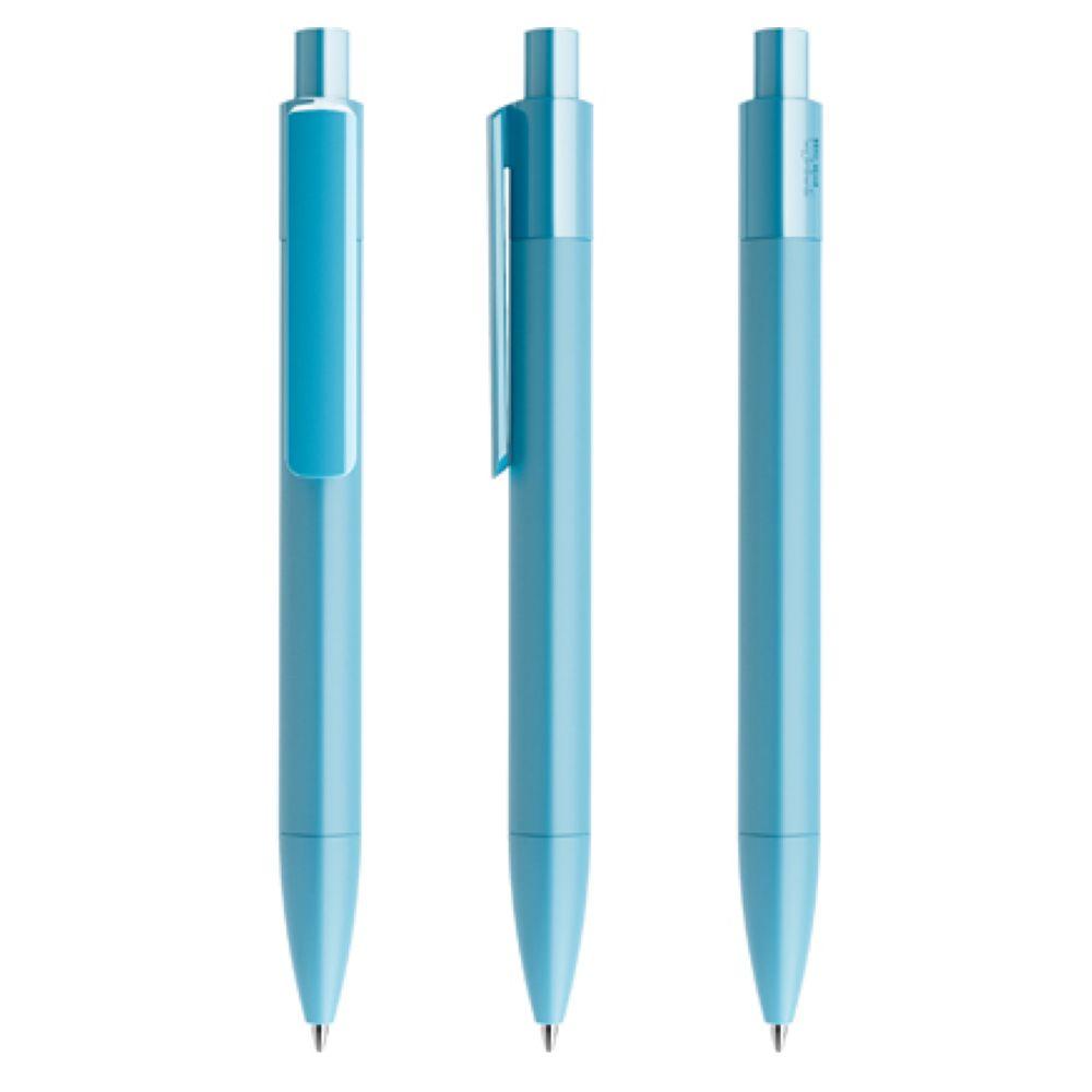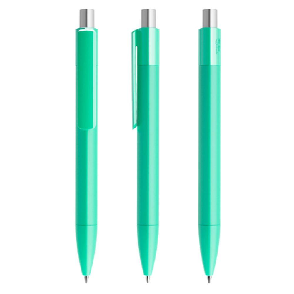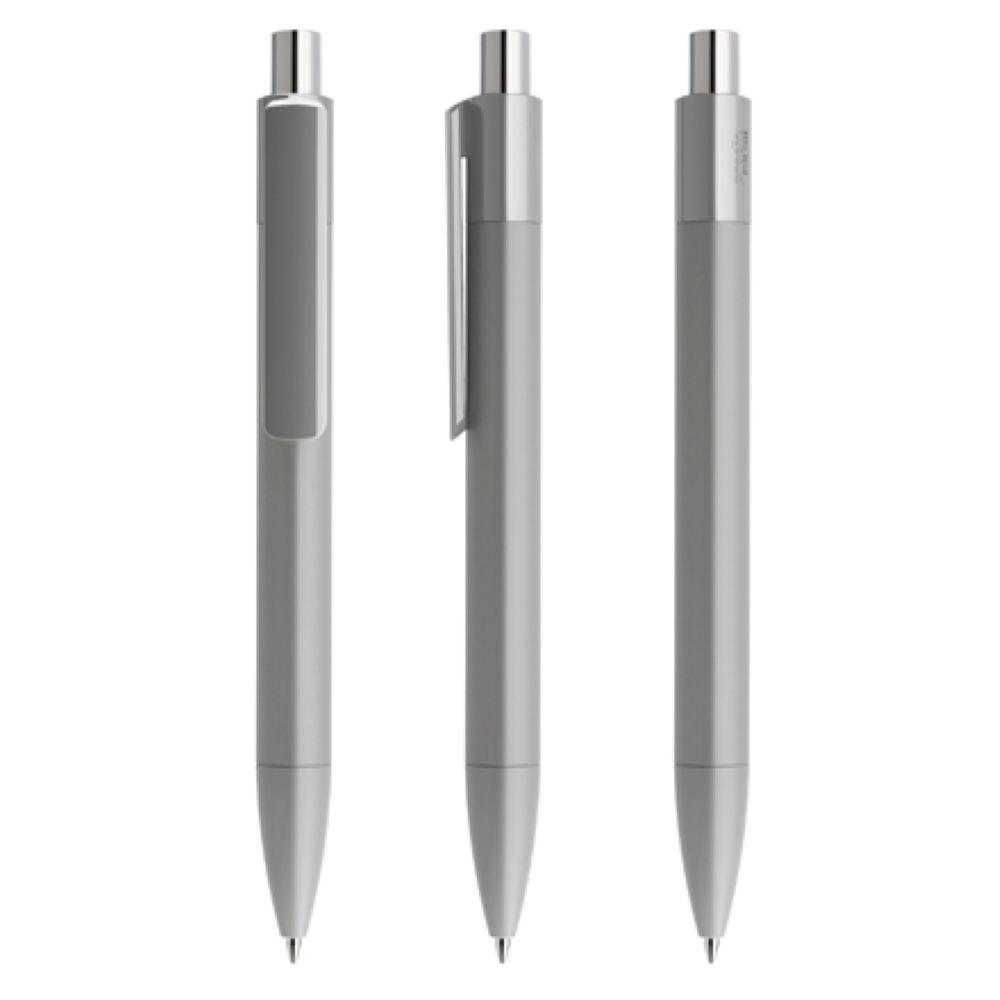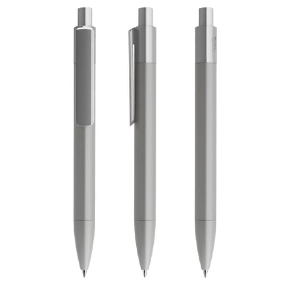 Er ist quadratisch vom Knopf bis zur Spitze - und zieht sofort alle Aufmerksamkeit auf sich. Gewicht und Form sind für maximalen Schreibkomfort ausgelegt. Der Oberflächenmix aus mattem Gehäuse und polierter Clip-Druckknopf Kombination unterstreicht seine Wertigkeit. Dank seiner leichten 45° Drehung sitzt der Clip wie ein Scheitel auf dem Gehäuse. Er bleibt stets im Blickfeld des Schreibenden. Liegt der DS4 auf dem Schreibtisch, wirkt er fast wie ein Namensschild. Starke Farben wie Mint Cream und Dusty Blue setzen visuelle Akzente in Matt und Soft Touch. In der Ausführung mit vollfarben mattem Gehäuse (PMM) lieferbar in zehn Standardfarben, hergestellt mit einem Rezyklatanteil von 100% (Schwarz und Weiß) oder 50% (alle anderen Farben), gekennzeichnet mit dem internationalen Recycling-Symbol. Sondergehäusefarben ab 5.000 Stück. Drei Druckflächen für Werbeanbringungen stehen zur Verfügung. Clip und Druckknopf sind in polierter Oberfläche. Druckknopf in galvanisiertem Silber poliert oder satiniert als Option. Ausgestattet mit der umweltfreundlichen auswechselbaren FLOATING BALL® lead free-Großraummine 1.0, Schreiblänge 5.000 m, Schreibfarbe Blau oder Schwarz.