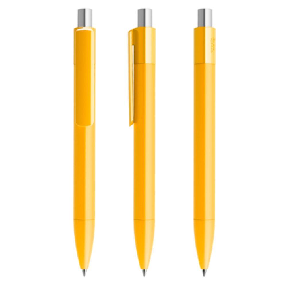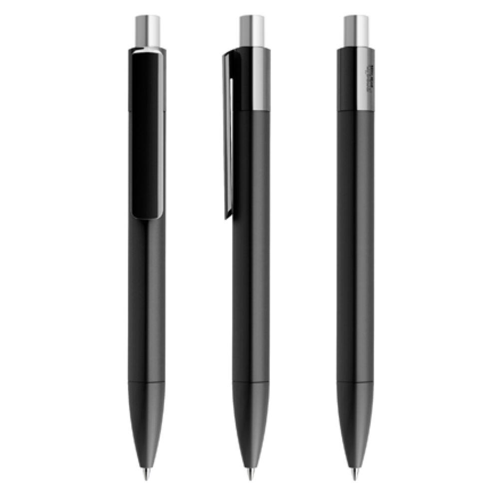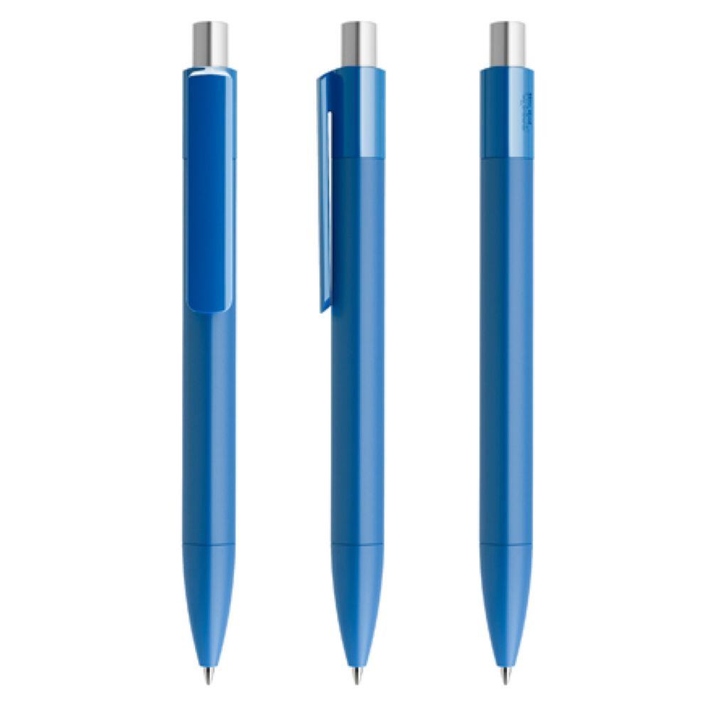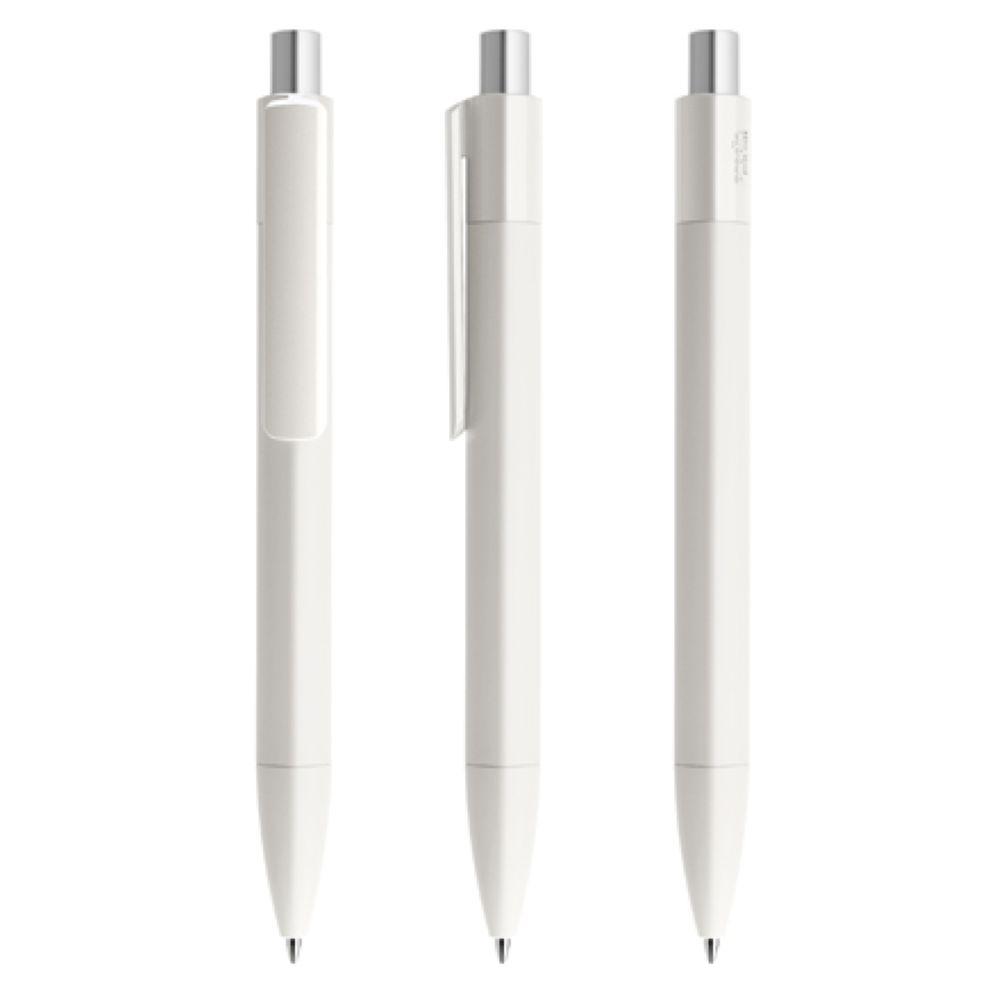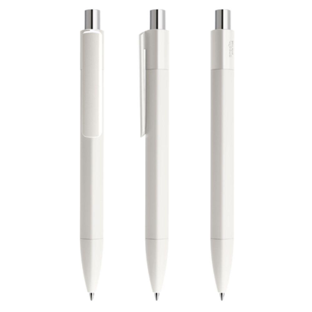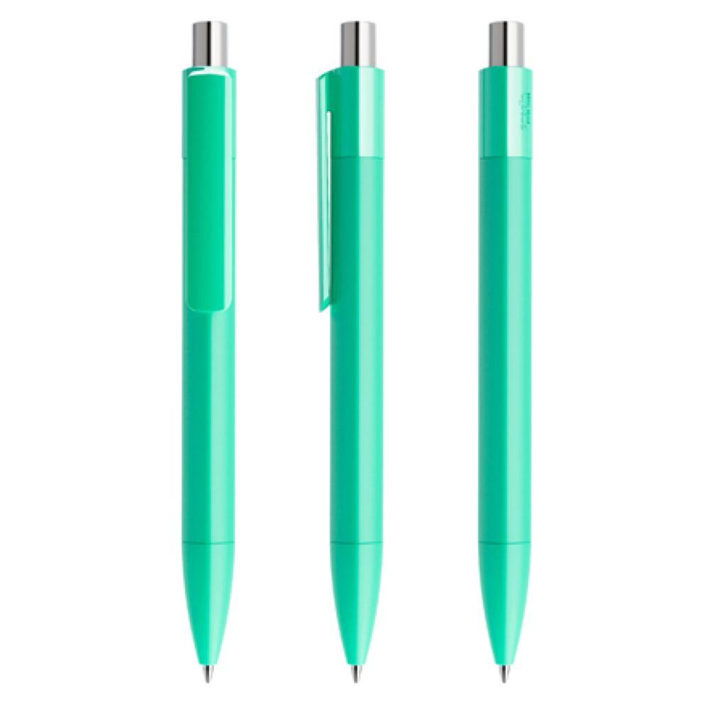 Er ist quadratisch vom Knopf bis zur Spitze - und zieht sofort alle Aufmerksamkeit auf sich. Gewicht und Form sind für maximalen Schreibkomfort ausgelegt. Der Oberflächenmix aus mattem Gehäuse und polierter Clip-Druckknopf Kombination unterstreicht seine Wertigkeit. Dank seiner leichten 45° Drehung sitzt der Clip wie ein Scheitel auf dem Gehäuse. Er bleibt stets im Blickfeld des Schreibenden. Liegt der DS4 auf dem Schreibtisch, wirkt er fast wie ein Namensschild. Starke Farben wie Mint Cream und Dusty Blue setzen visuelle Akzente in Matt und Soft Touch. In der Ausführung mit vollfarben mattem Gehäuse (PMM) lieferbar in zehn Standardfarben, hergestellt mit einem Rezyklatanteil von 100% (Schwarz und Weiß) oder 50% (alle anderen Farben), gekennzeichnet mit dem internationalen Recycling-Symbol. Sondergehäusefarben ab 5.000 Stück. Drei Druckflächen für Werbeanbringungen stehen zur Verfügung. Clip und Druckknopf sind in polierter Oberfläche. Druckknopf in galvanisiertem Silber poliert oder satiniert als Option. Ausgestattet mit der umweltfreundlichen auswechselbaren FLOATING BALL® lead free-Großraummine 1.0, Schreiblänge 5.000 m, Schreibfarbe Blau oder Schwarz.