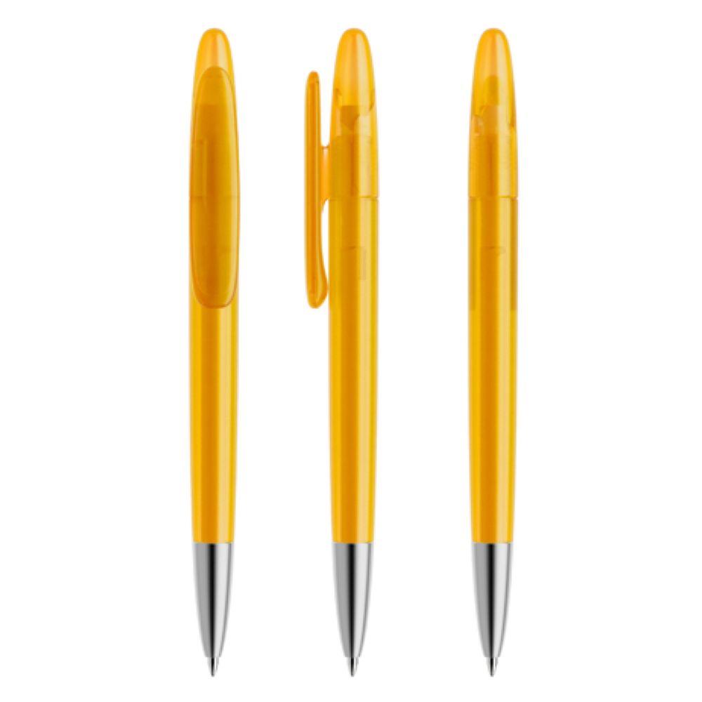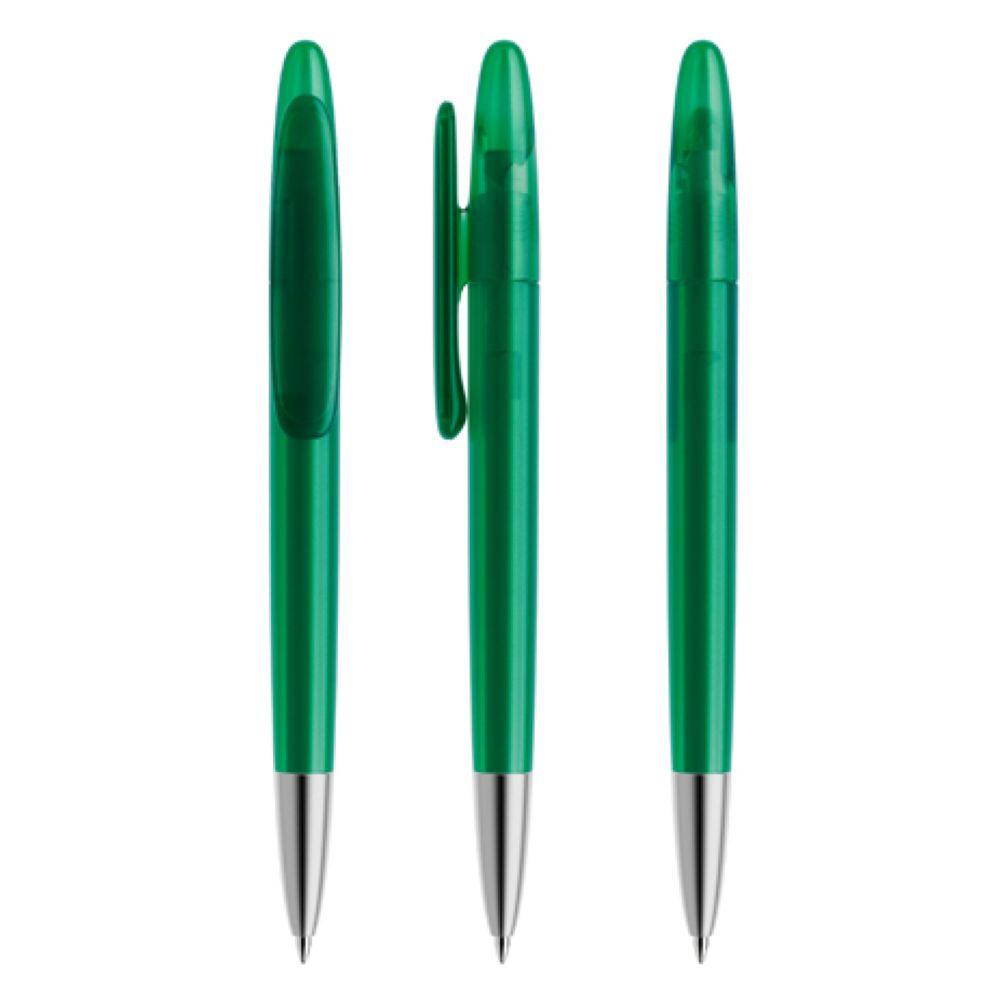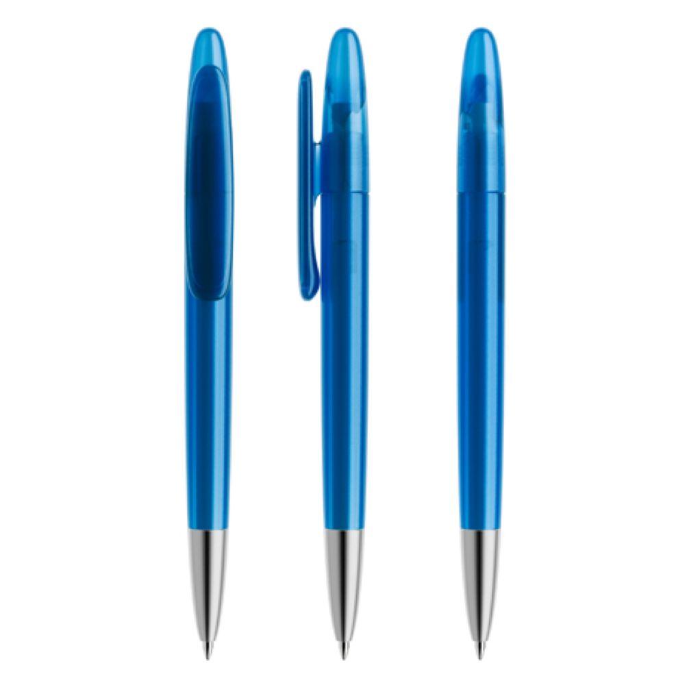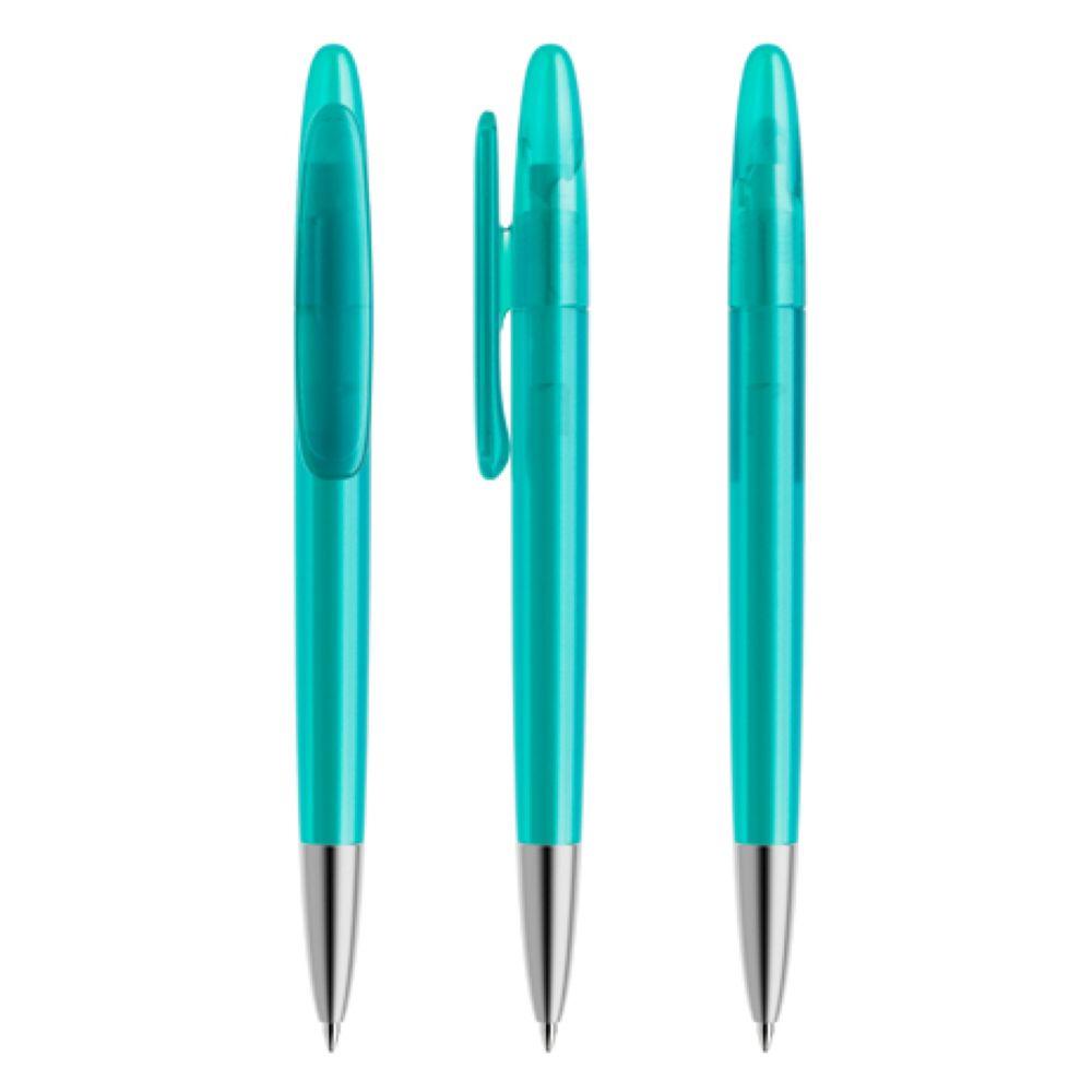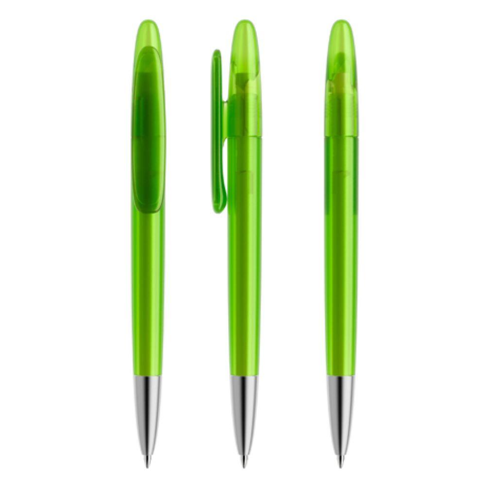 Wenn es ein bisschen mehr sein soll, dann ist er der richtige: Mehr Farben, mehr Oberflächen, mehr Personalisierung, mehr Druckflächen. Und das in einem mit renommierten Preisen ausgezeichneten Design. In der Ausführung mit gefrostetem Gehäuse und satinierter Metallspitze (TFS) lieferbar in elf Standardfarben, hergestellt mit einem Rezyklatanteil von 50%, gekennzeichnet mit dem internationalen Recycling-Symbol. Sondergehäusefarben ab 10.000 Stück. Drei Druckflächen für Werbeanbringungen. Ausgestattet mit der umweltfreundlichen auswechselbaren FLOATING BALL® lead free-Großraummine 1.0, Schreiblänge 5.000 m, Schreibfarbe Blau oder Schwarz.