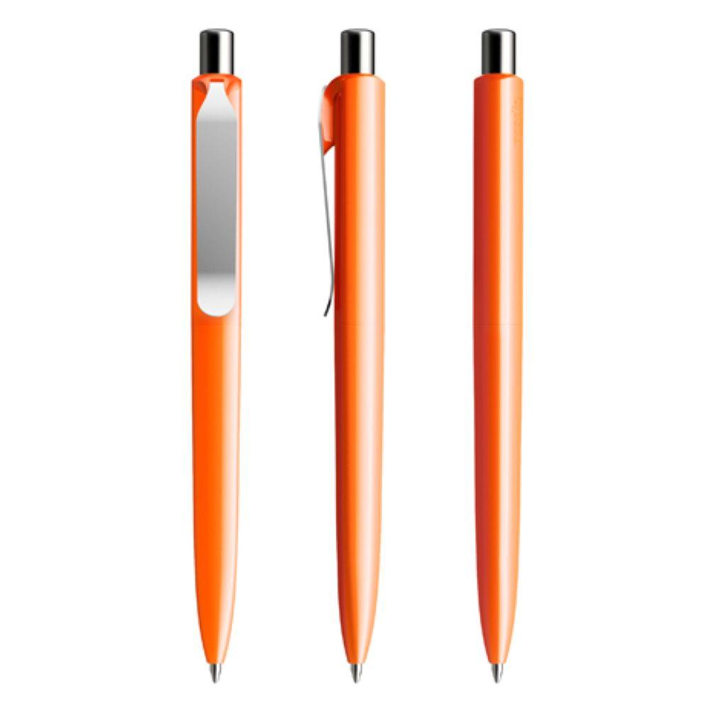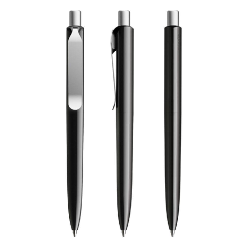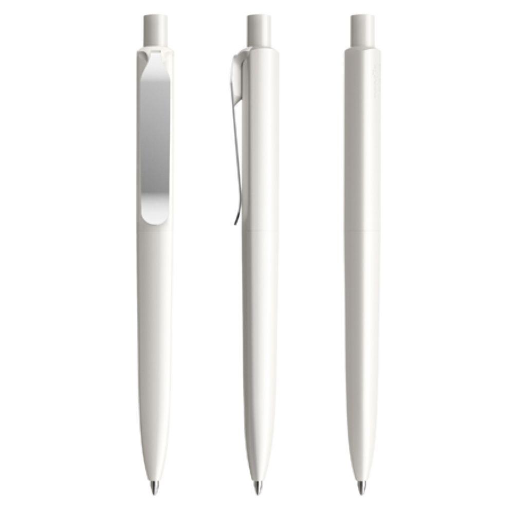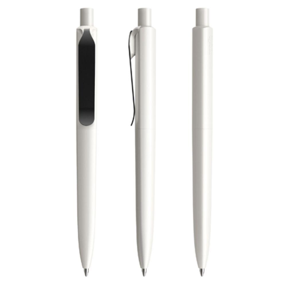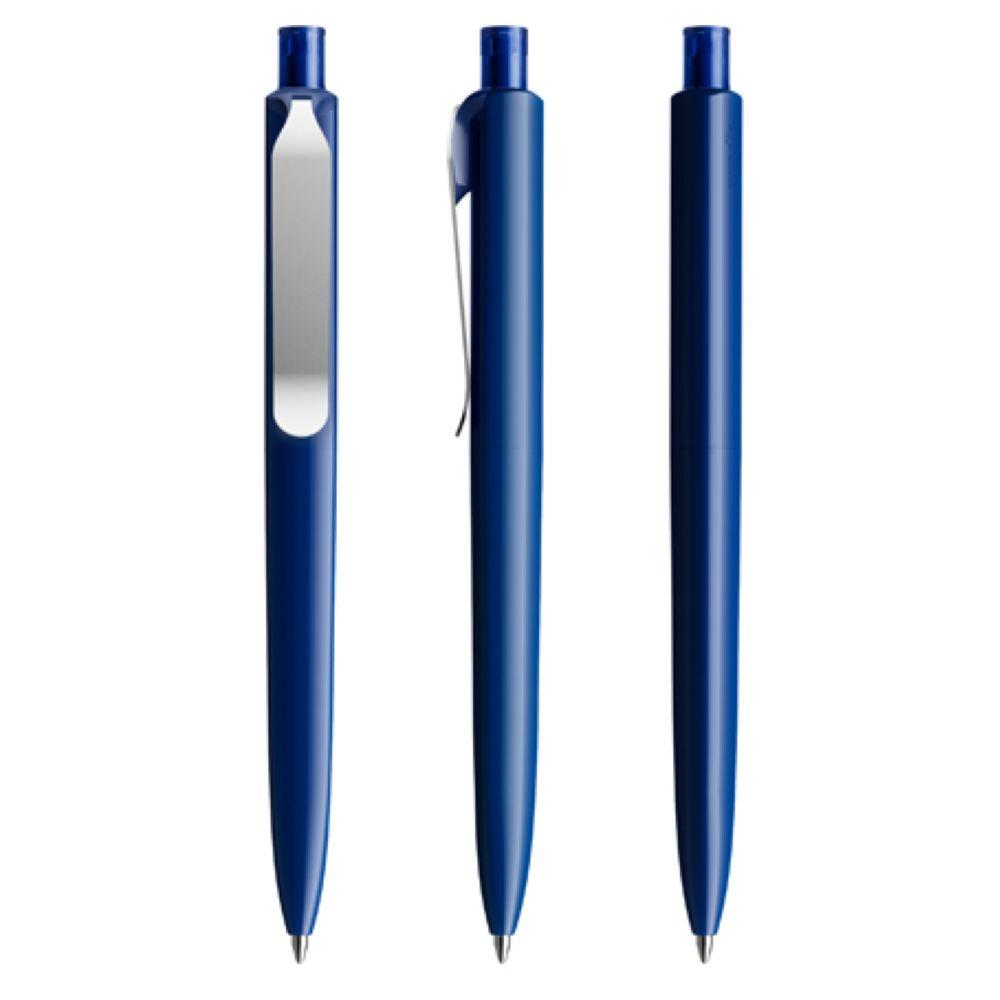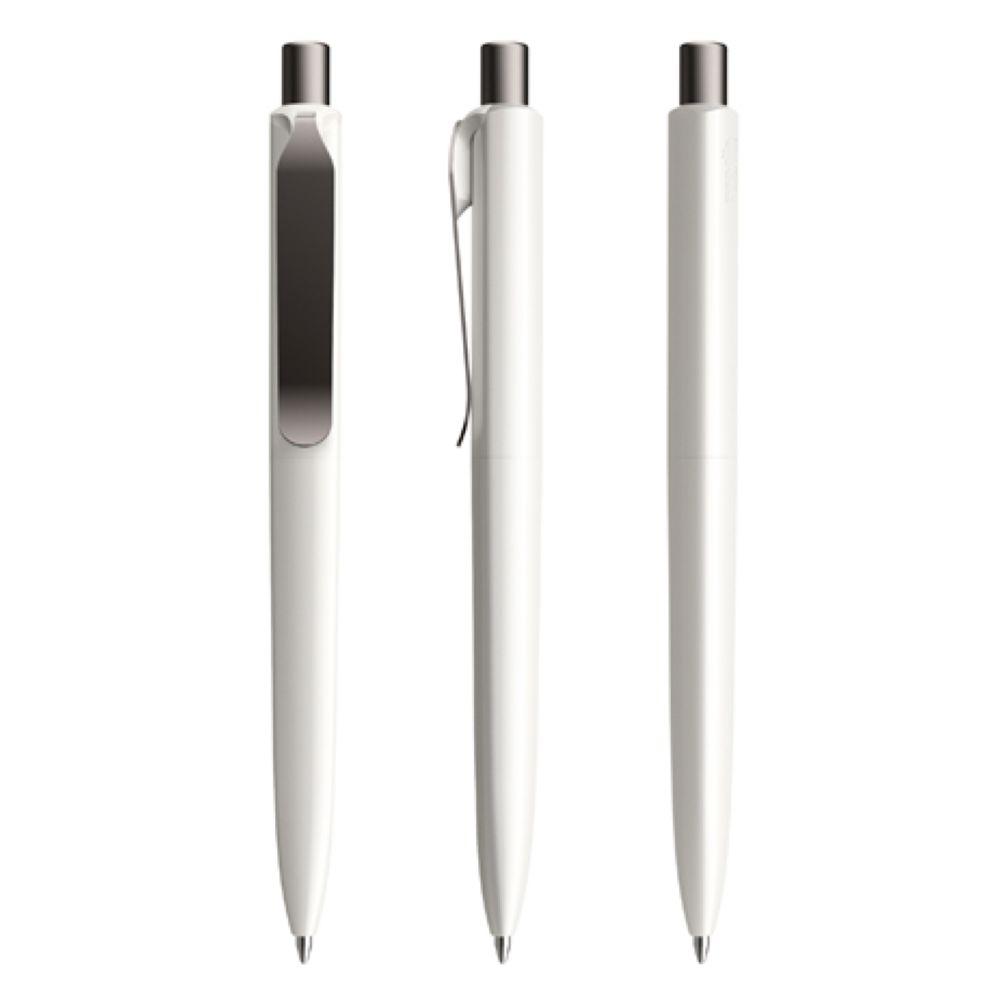 Die Ikone eines klassischen Schreibgerätes. Wertige Clip-Druckknopf-Kombinationen aus Metall machen den DS8 Metall-Clip noch vielseitiger. Ein ausgewogener Material-Mix aus Metall und Kunststoff, der Marken gekonnt in Szene setzt. Metall-Clips in verschiedenen Finishs verleihen ihm einen luxuriösen Touch. Die farblich absetzbaren Clip-Holder bieten eine Möglichkeit, neben der Primärfarbe auch die Zweitfarbe der Corporate Identity harmonisch umzusetzen. In der Ausführung mit vollfarben poliertem Gehäuse (PSP) lieferbar in vier Standardfarben, hergestellt mit einem Rezyklatanteil von 100% (Schwarz und Weiß) oder 50% (alle anderen Farben), gekennzeichnet mit dem internationalen Recycling-Symbol. Sondergehäusefarben ab 5.000 Stück. Fünf Druckflächen für Werbeanbringungen stehen zur Verfügung. Die Standardausführung ist mit Silber satiniertem Clip und poliertem oder satiniertem Metalldruckknopf ausgestattet. Alternativ stehen satinierte Metallclips und Metalldruckknöpfe in galvanisiertem Schwarz oder Graphit zur Auswahl. Ausgestattet mit der umweltfreundlichen auswechselbaren FLOATING BALL® lead free-Großraummine 1.0, Schreiblänge 5.000 m, Schreibfarbe Blau oder Schwarz.