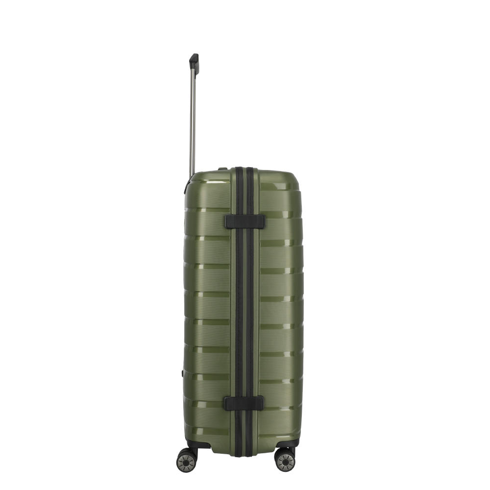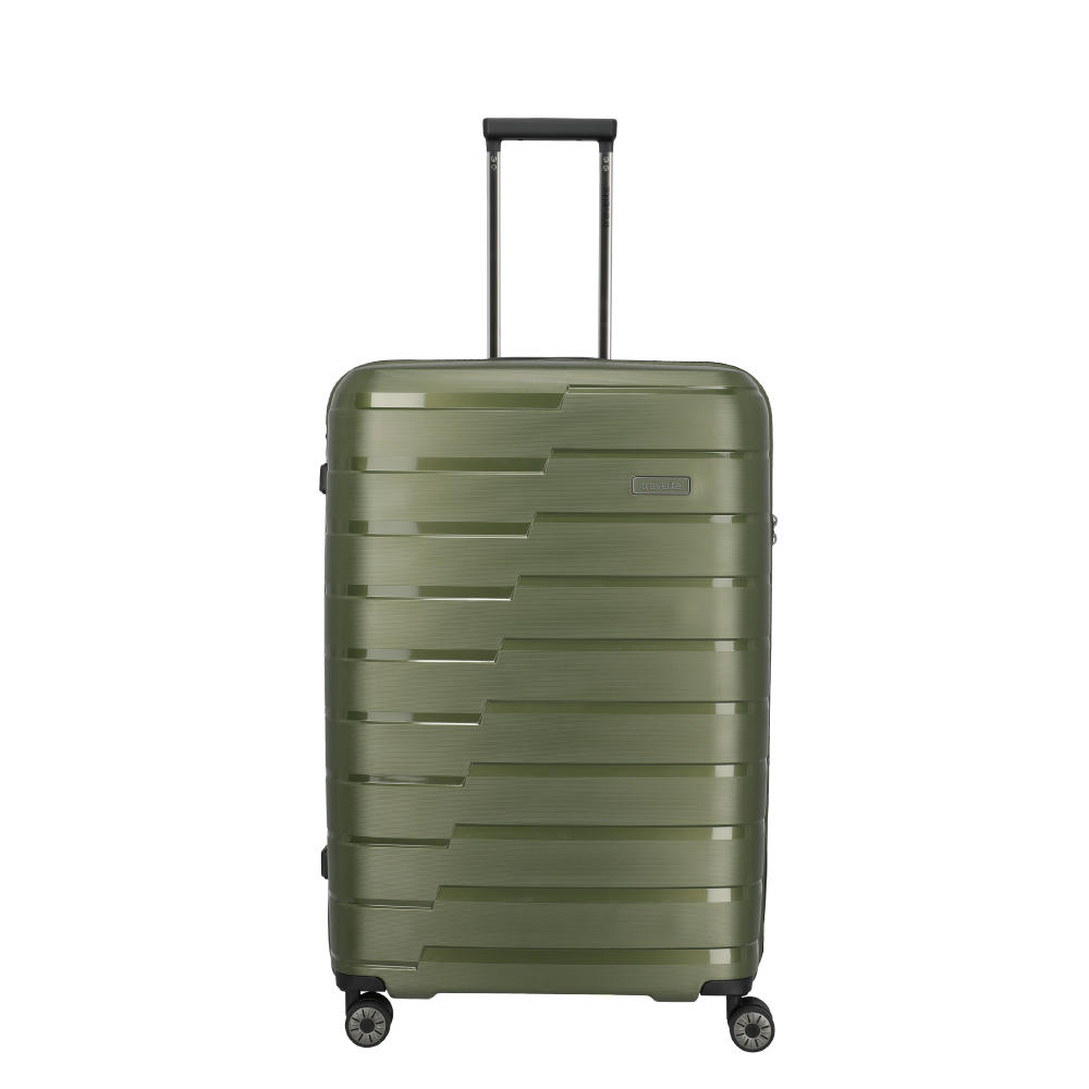 Details und Funktionen: * Aus widerstandsfähigem Polypropylen * nahezu unverwüstlich * Einzigartige Oberfläche mit Wechselspiel aus rauen und glänzenden Elementen * Versenktes TSA-Kombinationsschloss * Vier Doppelrollen * Stabiles, arretierbares Teleskopgestänge * Hochwertiges Innenfutter * Elastische Packgurte * Beidseitige Packwände mit zusätzlichen Reißverschlusstaschen