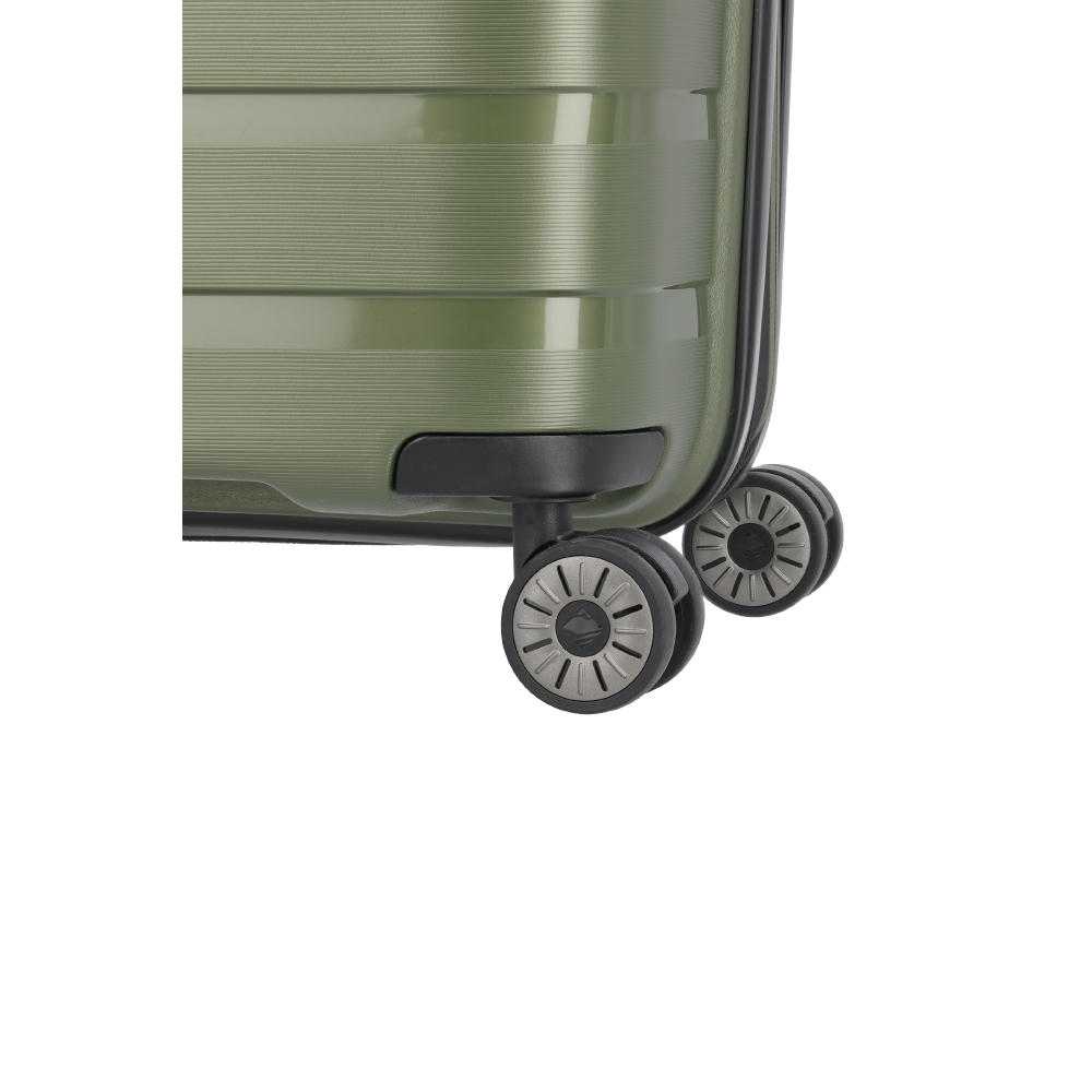 Material und Informationen: Material  PolypropylenSchloss  Versenktes TSA-KombinationsschlossRollen 4 DoppelrollenAusziehbare Teleskopstange arretierbares Leichtmetall-GestängeTragegriff  ergonomische Oberhand- und SeitenhandgriffeSeparates Wäschefach jaGepolstertes Laptopfach neinErweiterbar (Dehnfalte)  nein
